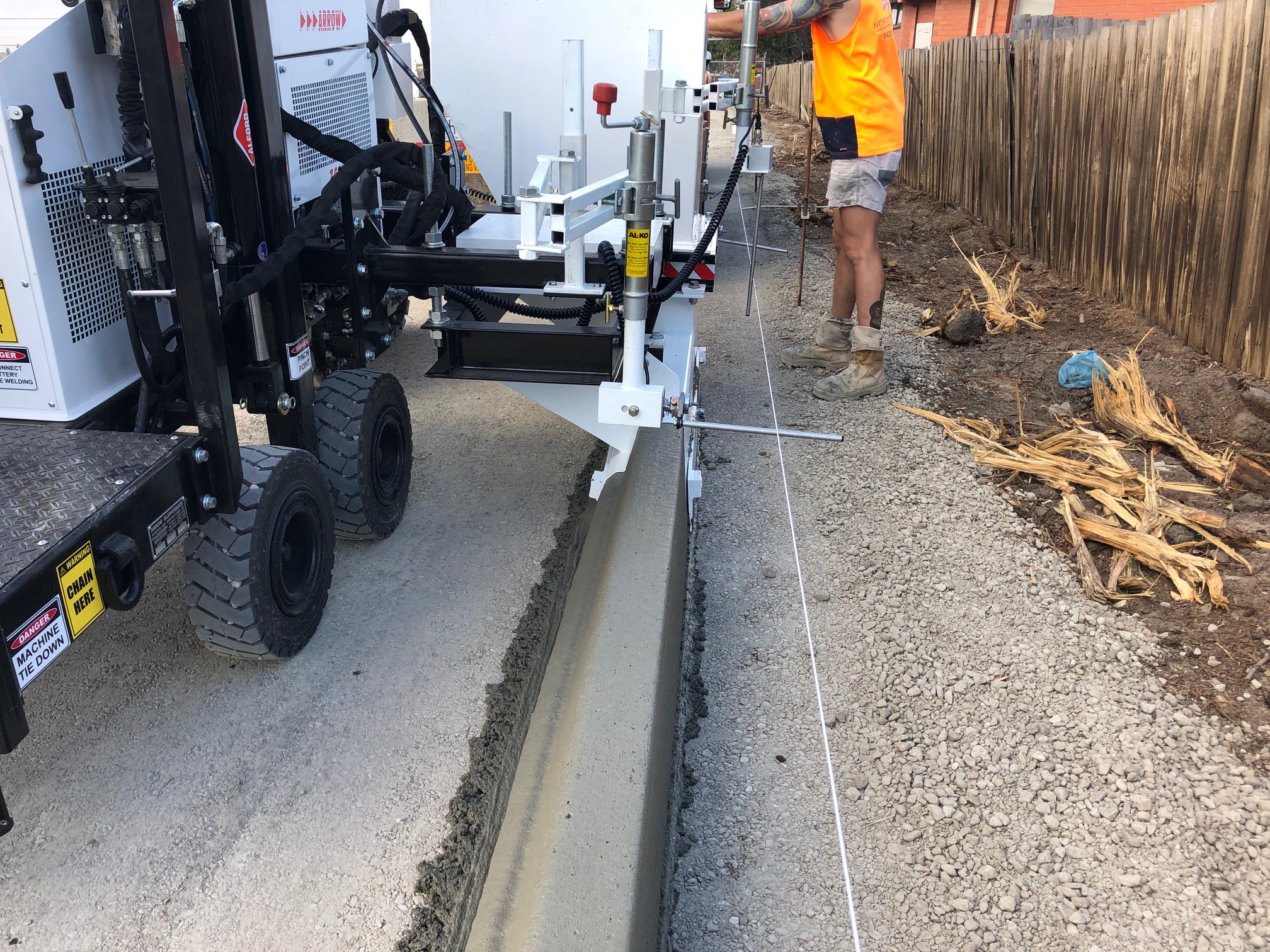 La ARROW 750XL estándar puede modelar el hormigón en sus moldes laterales para hacer bordillos, cunetas, etc… incluso podemos trabajar por debajo de la barrera de seguridad de las carreteras para hacer el bordillo de desagüe y con un kit especial también puede realizar pavimentos continuos más anchos de hasta 1,22 m operando por debajo de la máquina.